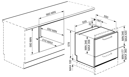 possibilità di inserimento stoviglie fino a 32 cm Ø