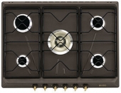 manopole rame 5 bruciatori a gas di cui 1 ultrarapido da 5,00 kW a doppio comando (3 soluzioni di fuoco) griglie e